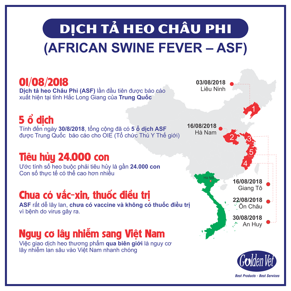 Theo thông tin của tổ chức Thú y thế giới (OIE), ngày 1/8/2018, bệnh Dịch tả heo Châu Phi (African swine fever – viết tắt là ASF) lần đầu tiên được báo cáo xuất hiện tại tỉnh Hắc Long Giang của Trung Quốc.