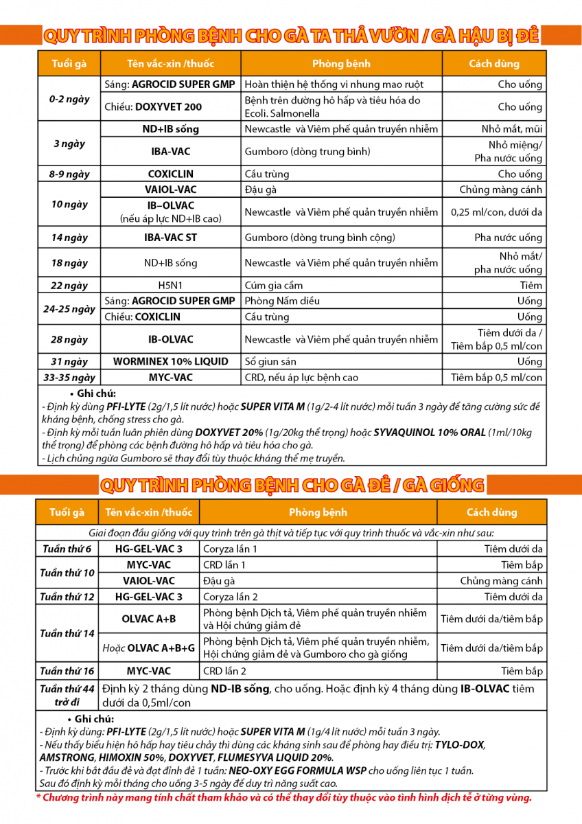 QUY TRÌNH PHÒNG BỆNH CHO GÀ